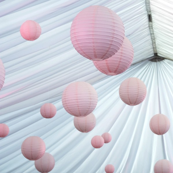 Lampion boule en papier rose pâle uni sans décor couleur " fleur de cerisier ".